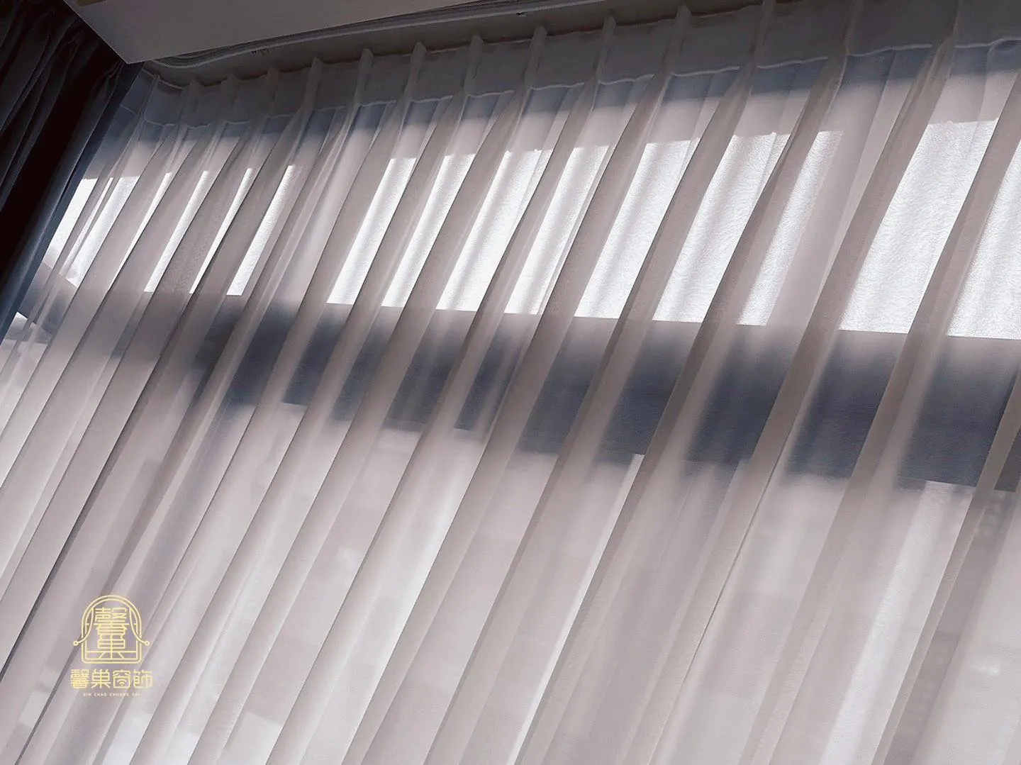 全素面遮光布簾+細膩紋路白紗,柔和光線的同時保有質感層次。