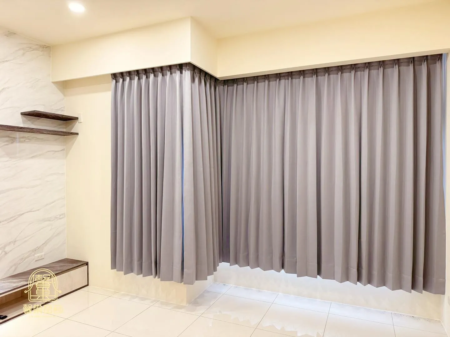 全素面遮光布簾,簡潔俐落,兼顧隱私與好眠。