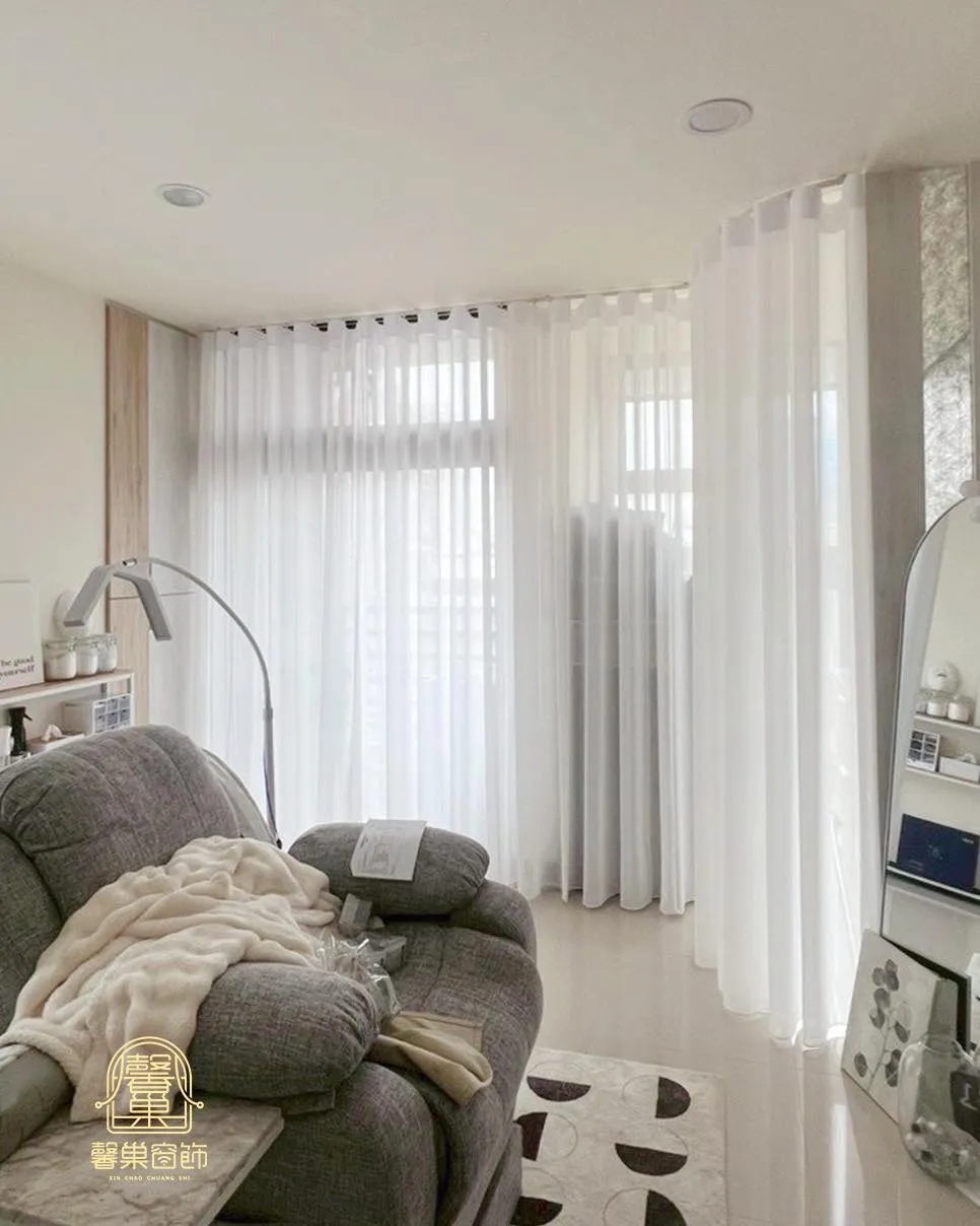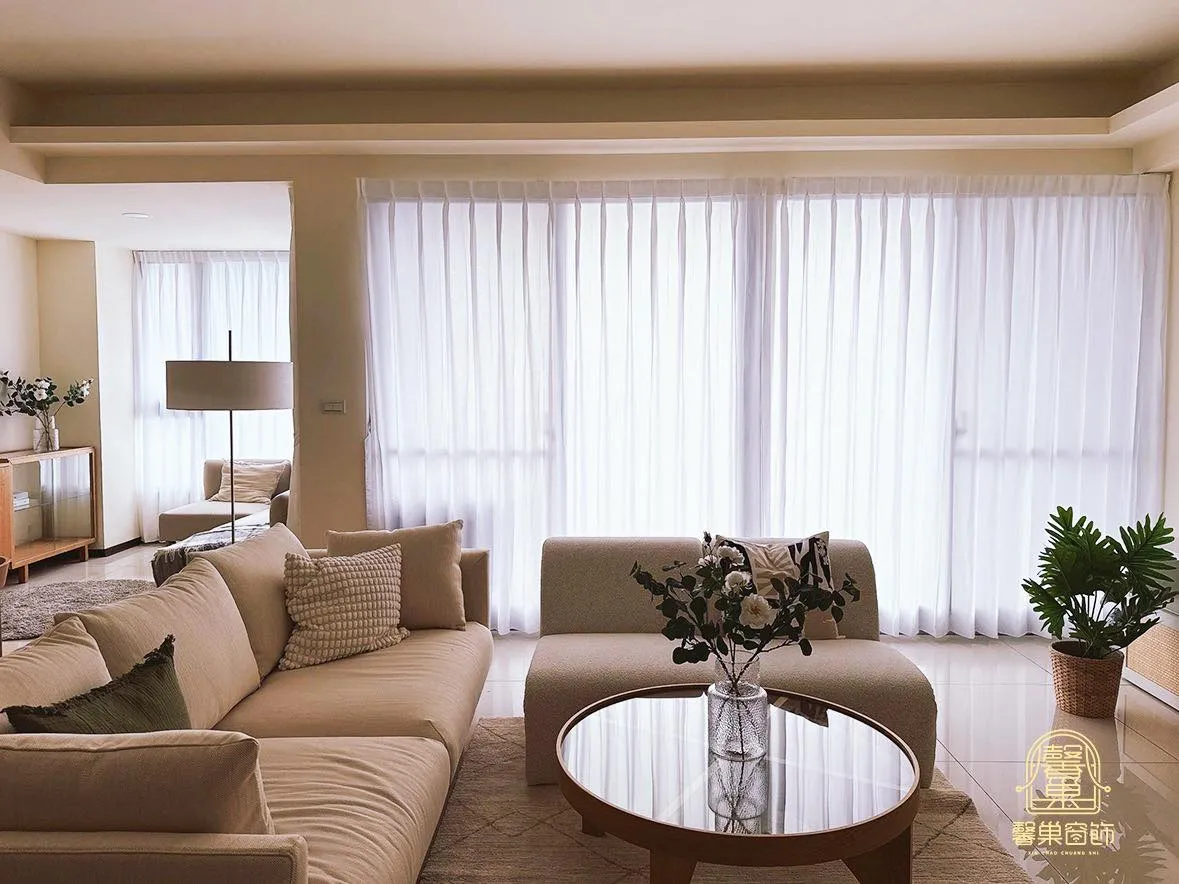 這次的客人是地主戶, 希望在房子出售前,先替空間做好「第一眼就心動」的氛圍鋪陳。 我們全屋替她搭配了 質感細緻的紗簾, 讓光線變柔、空氣變亮、視覺更清爽,