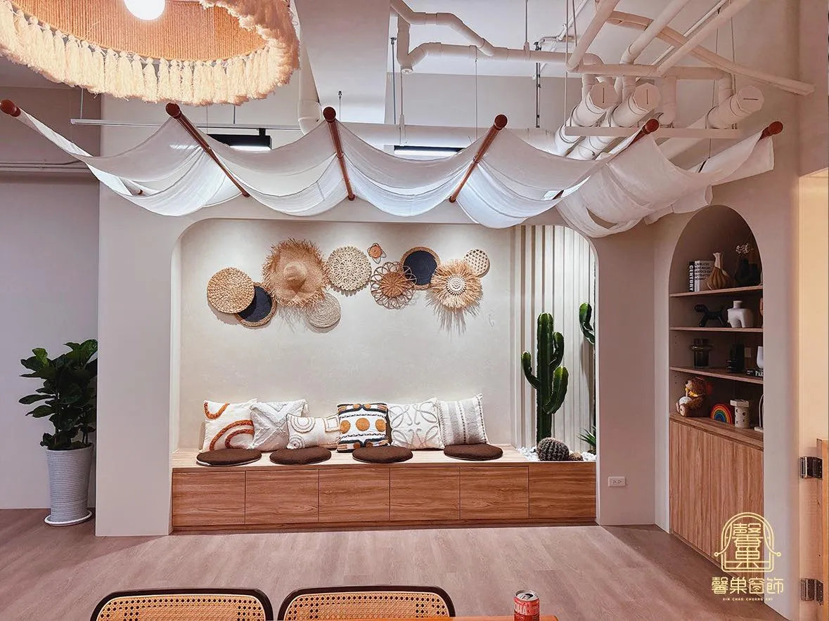 在靜謐的療癒空間裡,細節決定了舒適感。 我們為 禾木筋膜 HER MOOD SPA 選擇了 奶油色三折景布簾,巧妙隔出一方獨立又安心的療程區域。